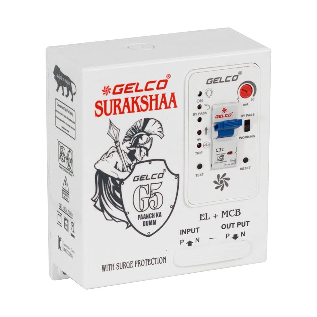 The GELCO Suraksha is a protective power board designed to safeguard electrical systems from overvoltage, thermal overload, and leakage current. With a 63A load capacity, it operates on a 230V, 50Hz supply and includes a built-in MCB for thermal protection and overvoltage cutoff at 280V. The board can detect and respond to leakage currents ranging from 1 to 50 mA, offering robust defense for residential and light commercial installations.