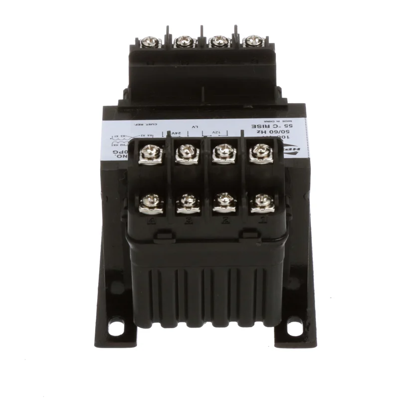 The HAMMOND PH100PG control transformer is a single-phase, encapsulated core transformer rated at 100 VA. It is designed for panel mount applications, offering flexible primary input of 120/240 VAC and secondary output of 12/24 VAC at 50/60 Hz frequency. Built for reliability and compact control systems.