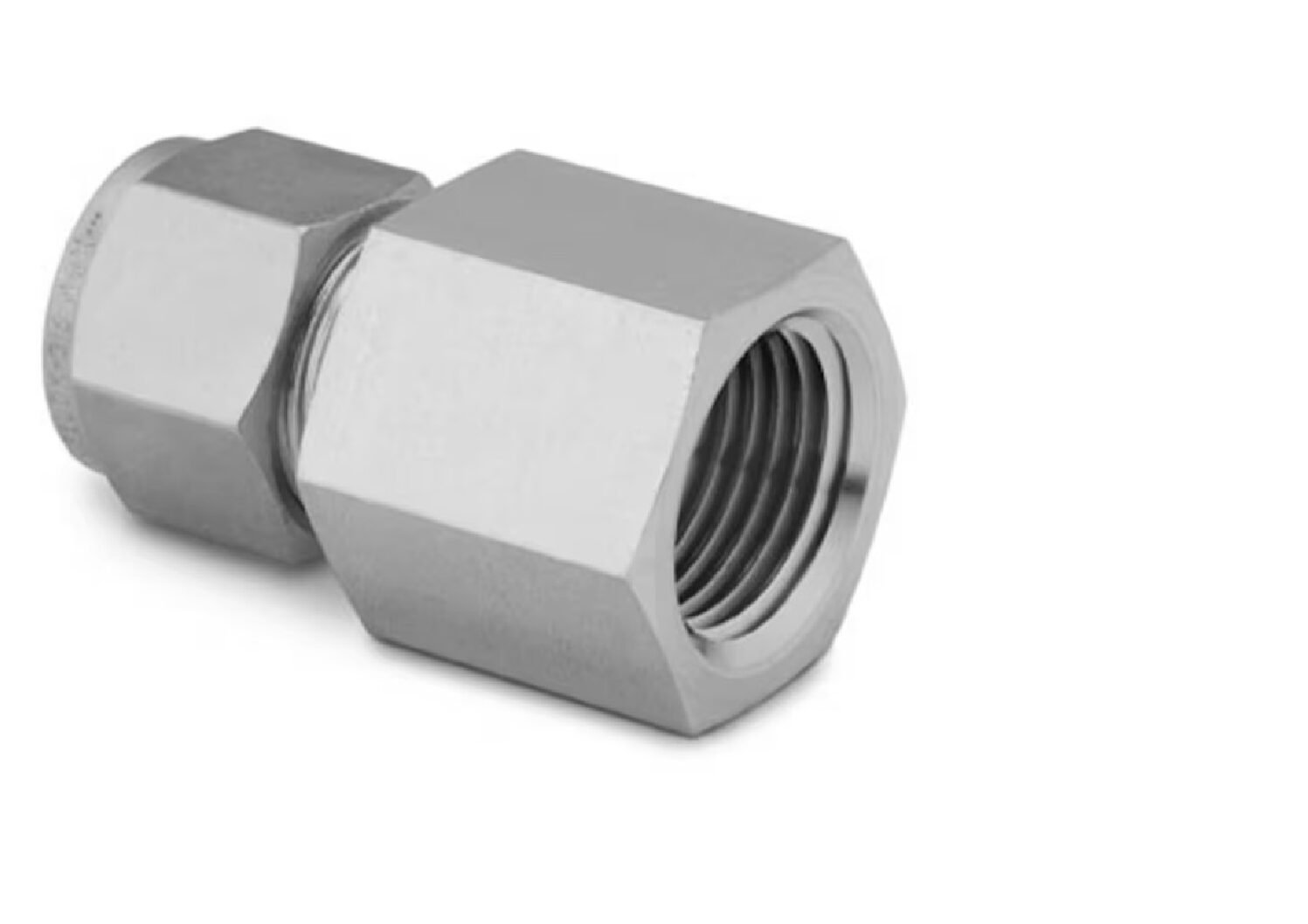 Stainless Steel Swagelok Tube Fitting, Female Connector, 5/8 in. Tube OD x 1/2 in. Female NPT. A 316 stainless steel female connector with Swagelok? tube fitting on one side and a 1/2 in. female NPT connection on the other, cleaned and packaged according to SC-10 standards.